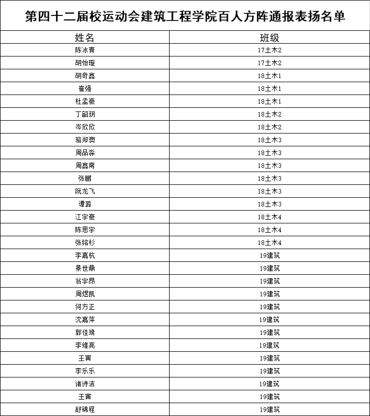 关于第四十二届校运动会博彩平台推荐 百人方阵通报表扬的名单