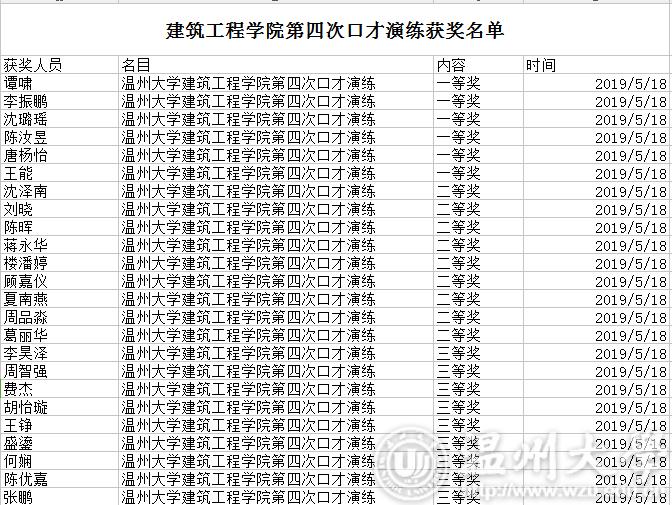 博彩平台推荐 2018-2019学年第二学期第四次口才演练获奖名单
