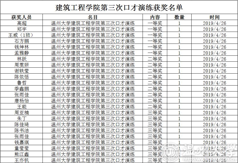 博彩平台推荐 2018-2019学年第二学期第三次口才演练获奖名单