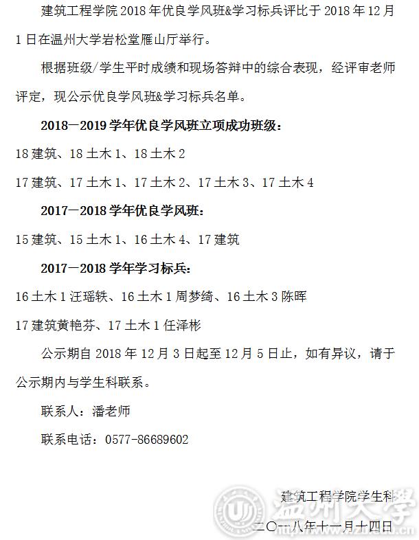 建工博彩平台推荐 2018年优良学风班&学习标兵公示
